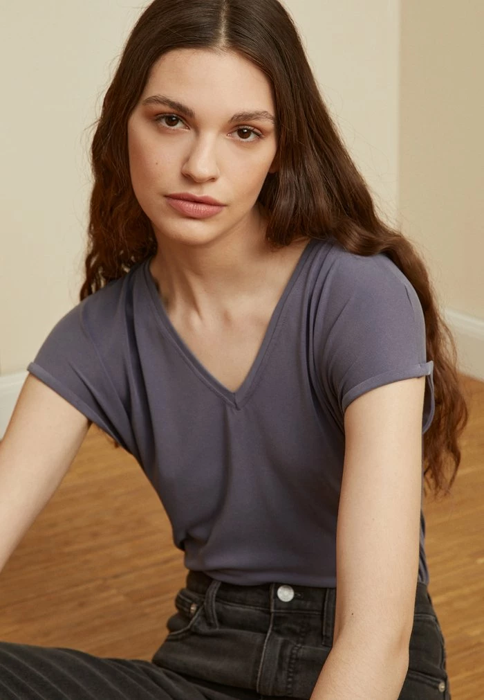 - Neckline: Low-cut v-neck