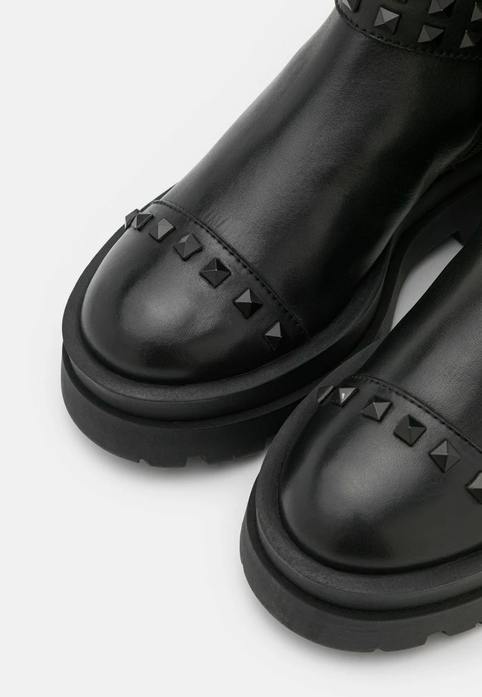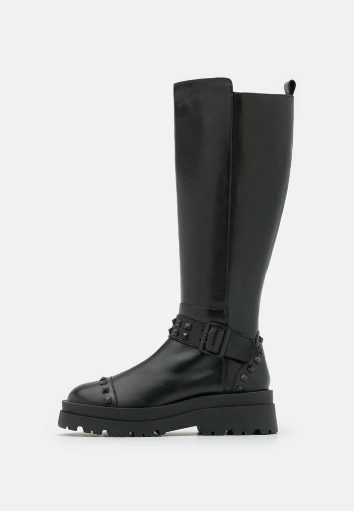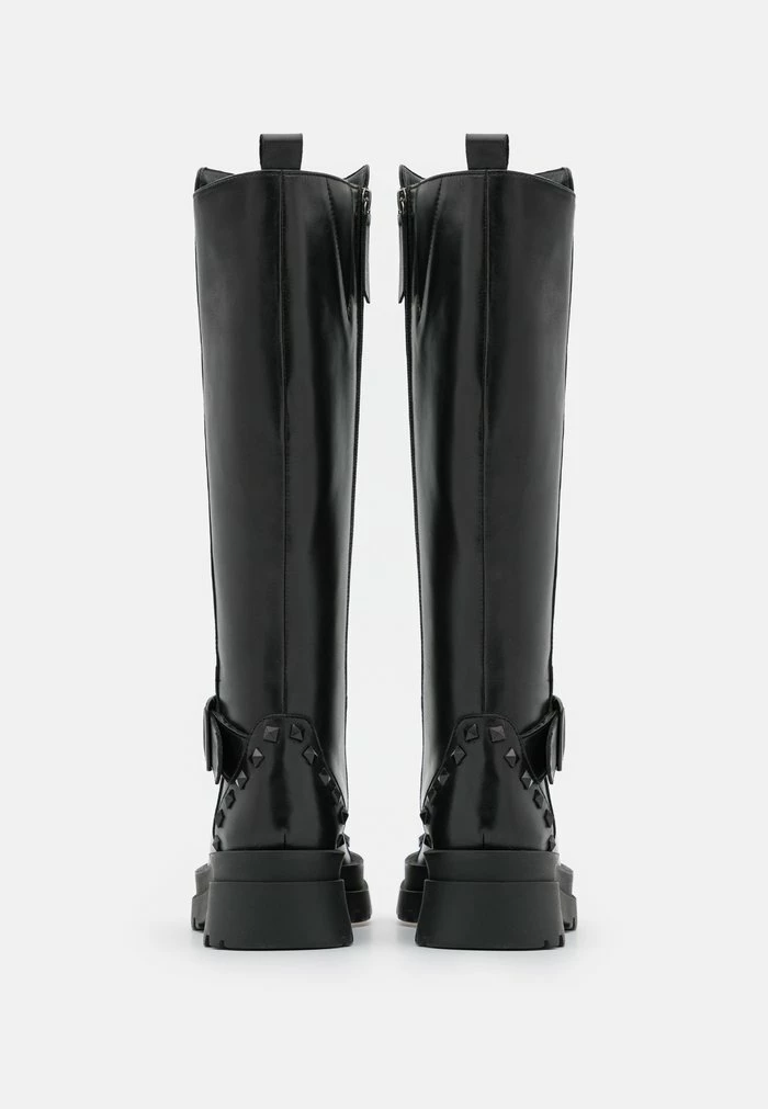 - Details: Decorative studs, buckle, elastic insert